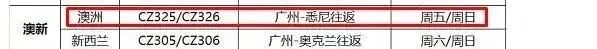 自5月3日0时至5月30日24时,中国南方航空公司每周日执飞悉尼—广州(CZ326,由悉尼起飞);