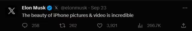 如上图所见,马斯克在库克的帖子下评论道:“iPhone的照片和视频之美令人难以置信。”