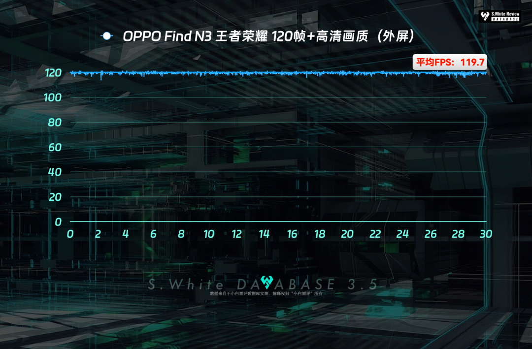 2、使用OPPO Find N3外屏测试《王者荣耀》120帧高清画质:平均帧率 119.7 FPS,机身最高温度 41.1℃。
