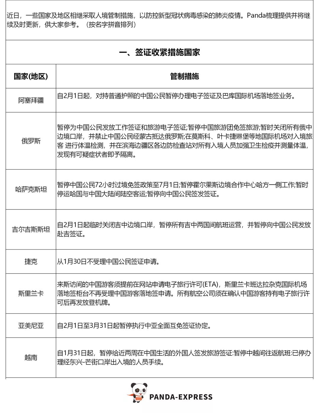 各国签证收紧、入境限制管控国家及航空停飞清单