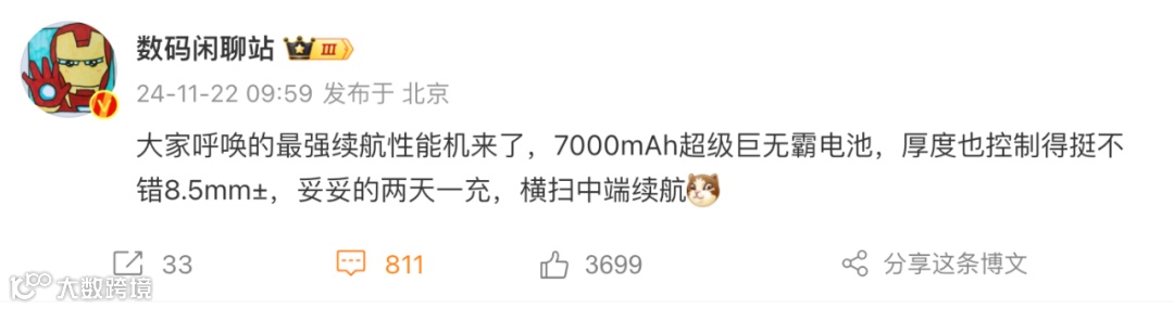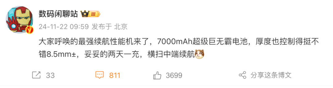 作为参考,最近发布的真我GT7 Pro配备6500mAh泰坦电池,实测续航表现不错,真我如果安排7000mAh新机的话,喜欢长续航的小伙伴可以蹲一波了~
