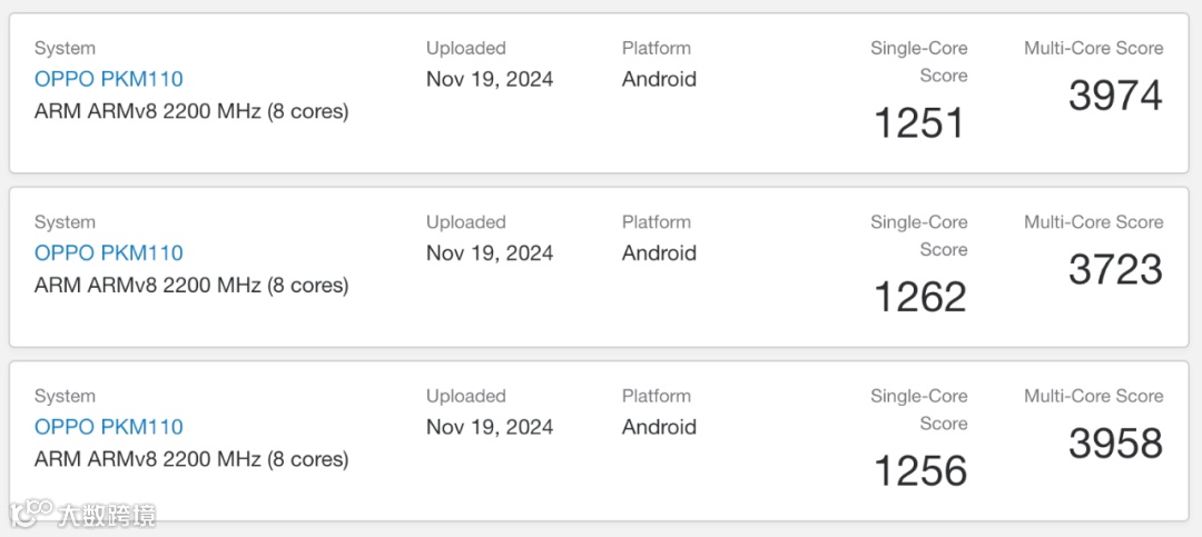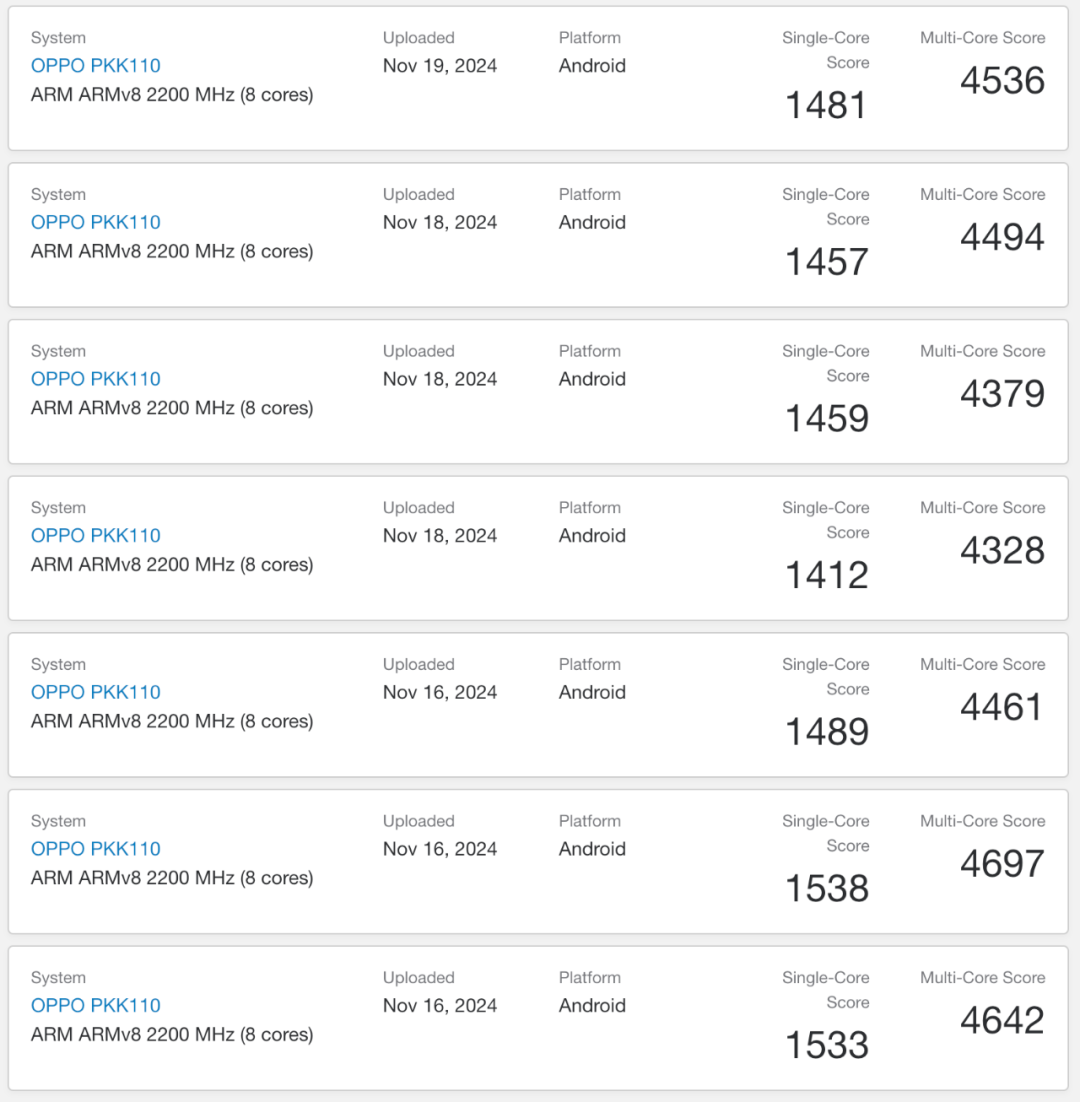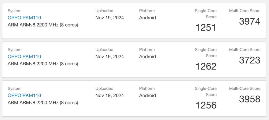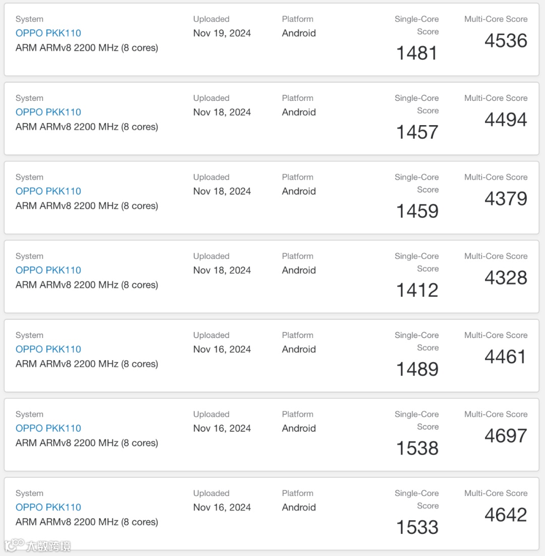 相关消息显示Reno13型号为PKM110,而Reno13 Pro型号为PKK110,Geekbench后台显示Reno13单核成绩在1250+,多核成绩3900±,12GB运存,搭载的处理器CPU频率为1*3.35GHz、3*3.2GHz、4*2.2GHz,消息称对应联发科天玑8350。