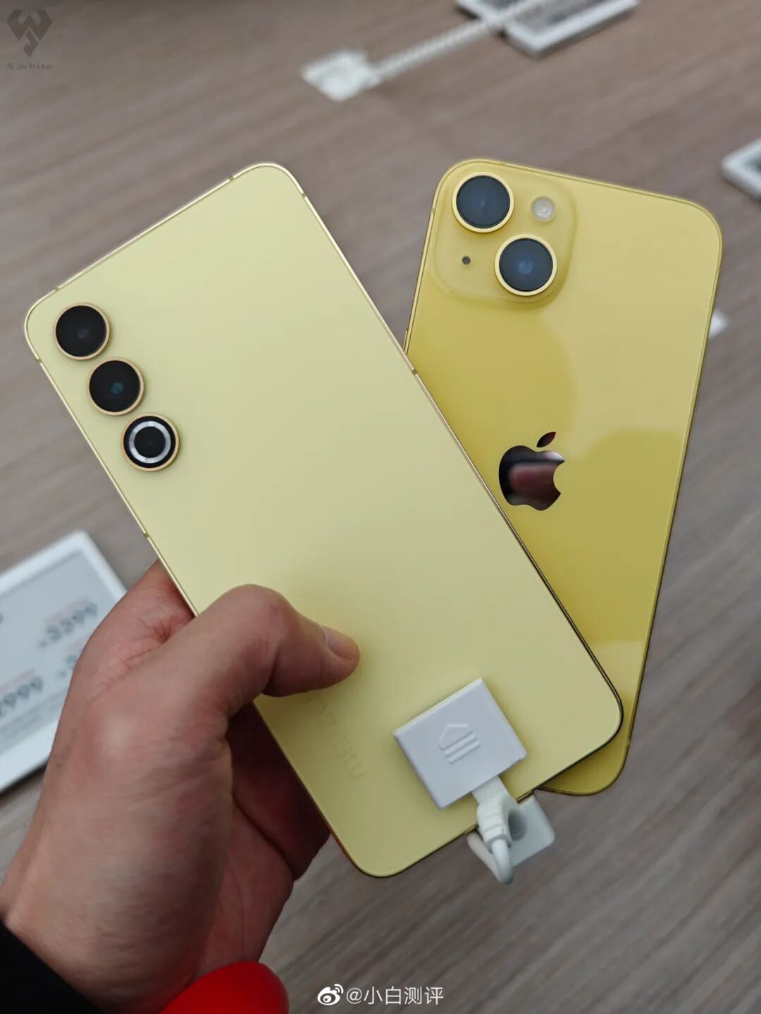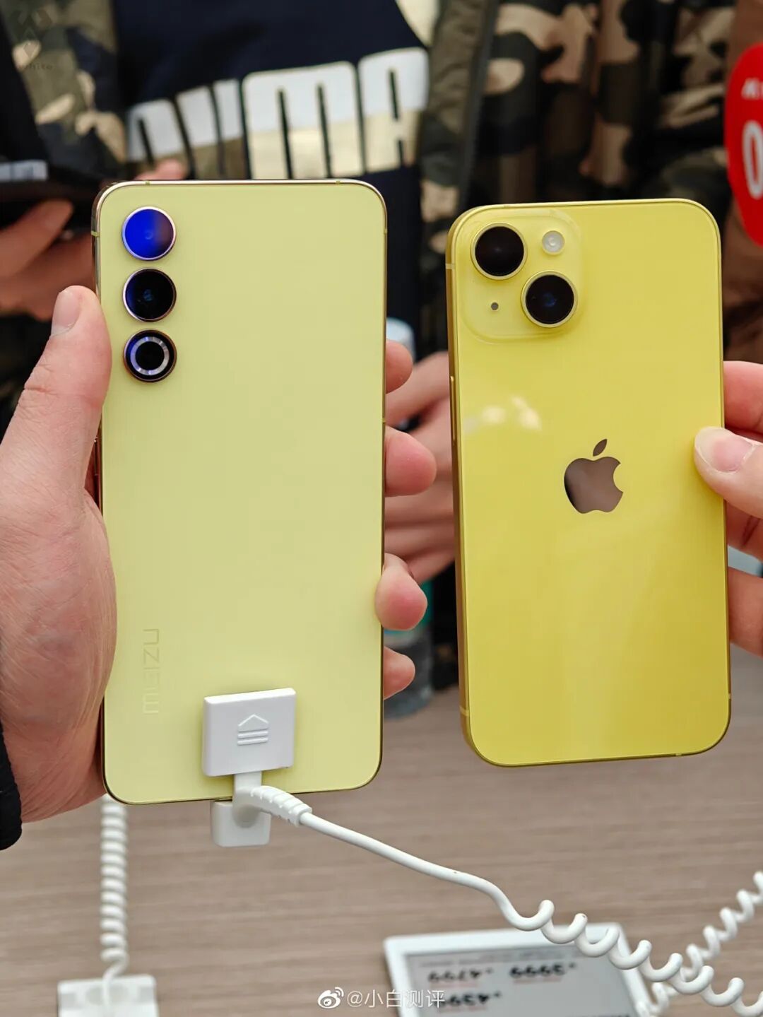 魅族20悦动黄、iPhone 14黄色正面、背面对比。