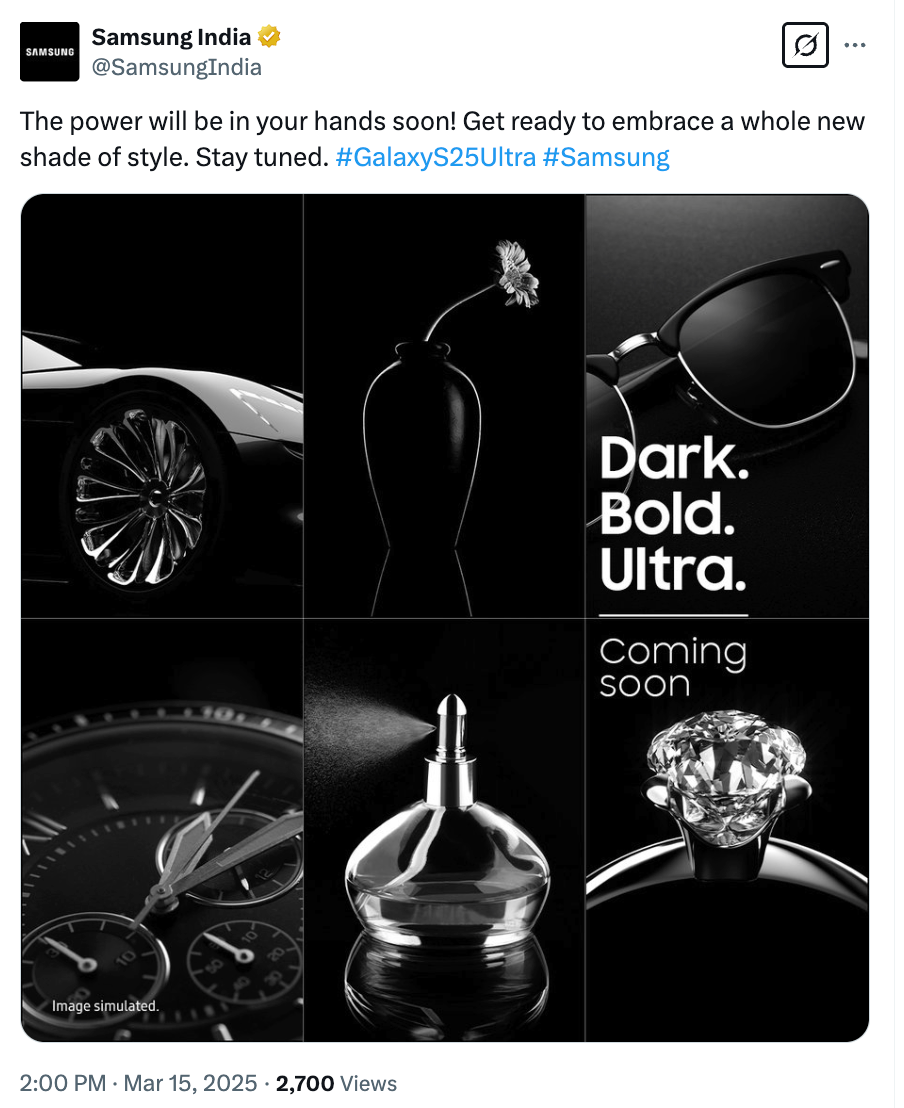 如上图所见,三星海外账号预热可能带来一款全新风格,有媒体猜测可能是深黑配色+亮银处理设计。