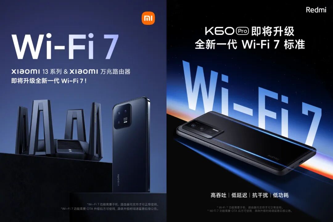 据小米官方消息,全新一代标准,Wi-Fi 7来了,小米13系列和小米万兆路由器,以及Redmi K60 Pro均将升级Wi-Fi 7。