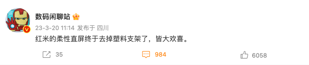 与此同时,数码闲聊站也爆料称「红米的柔性直屏终于去掉塑料支架了,皆大欢喜」,目前不清楚是指Note 12 Turbo还是后续的Redmi K60 Ultra,但对于追求质感的米粉们来说是个好消息,可以关注下后续。