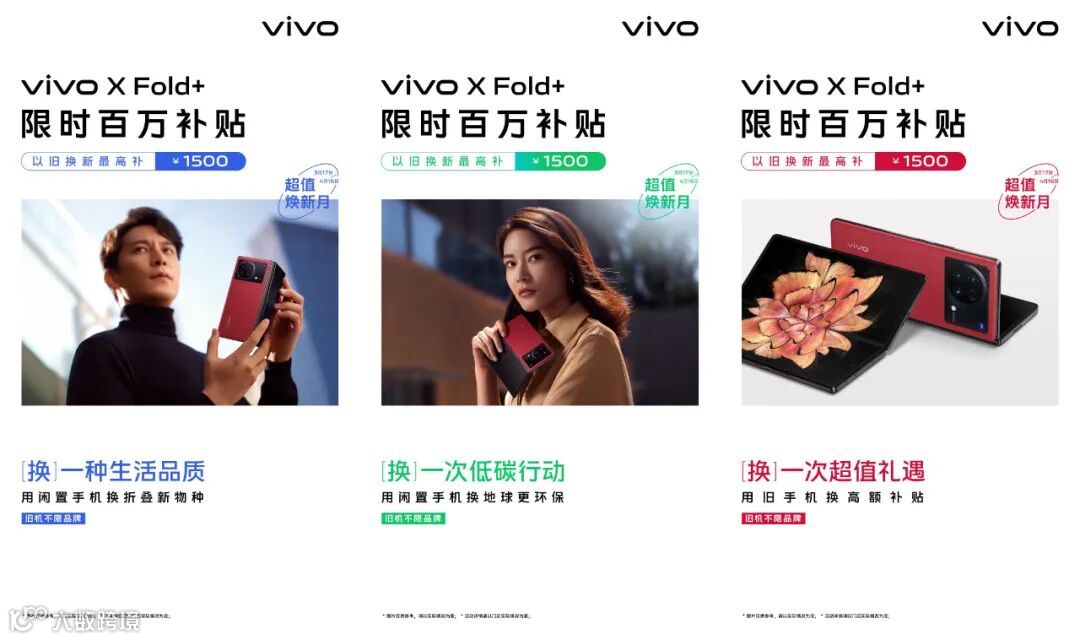 也许是新机要来了,今天vivo官方宣布为vivo X Fold+开启以旧换新活动,限时百万补贴,旧机最高补贴1500元,不限品牌,vivo全渠道均可参与。