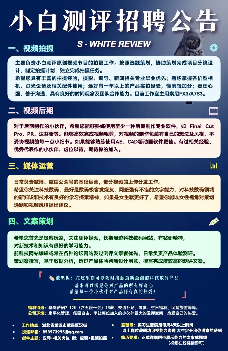 小白测评招聘公告 简历投递邮箱853973995@qq.com