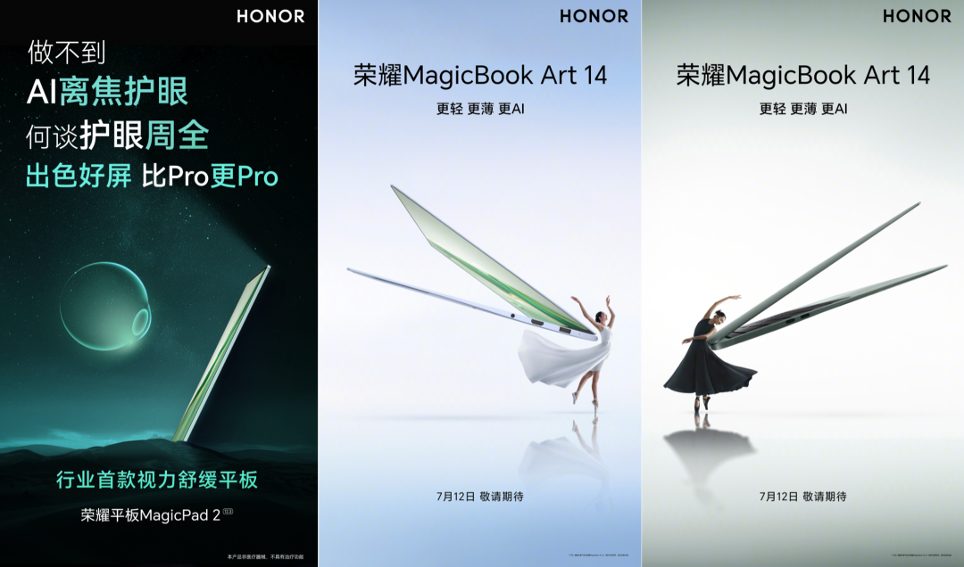 而荣耀MagicPad2平板主打行业首款视力舒缓平板,预计将支持AI离焦护眼;荣耀MagicBook Art 14则主打“更轻、更薄、更AI”。感兴趣的可以关注下后续消息~