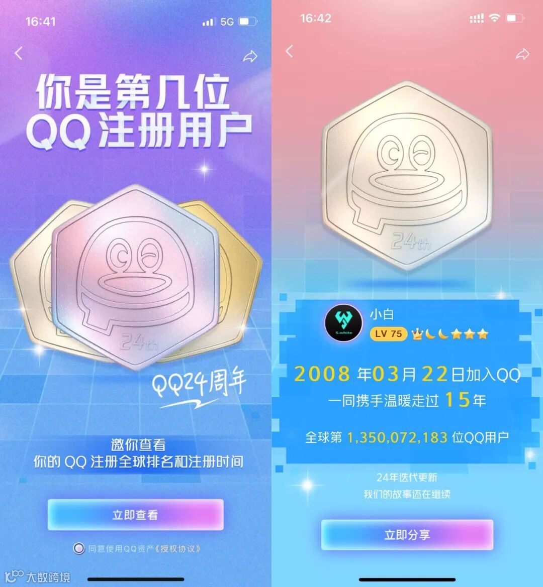 大家也可以在QQ查看自己的注册时间和全球排名。可以留言看看谁注册地更久~