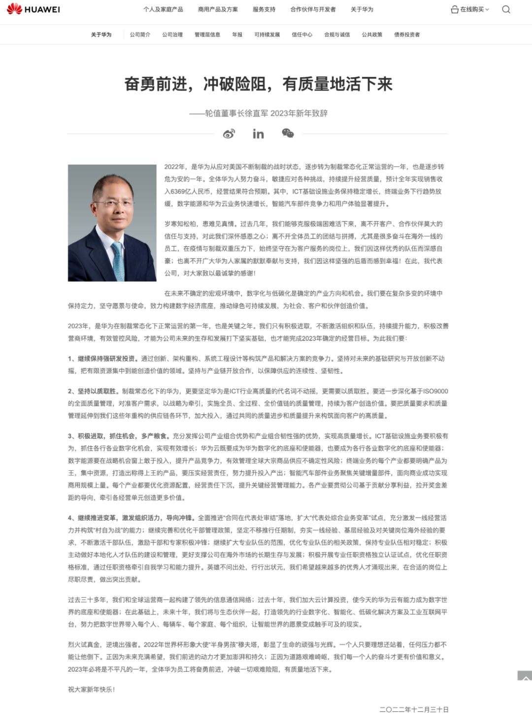 目前各大市调机构暂时未更新最新的国内PC市场、手机市场数据。可以补充的是,前不久华为轮值董事长徐直军在2023新年致辞中曾透露“预计华为2022全年实现销售收入6369亿人民币,其中,ICT基础设施业务保持稳定增长,终端业务下行趋势放缓,数字能源和华为云业务快速增长,智能汽车部件竞争力和用户体验显著提升”。你身边有用华为笔记本、平板类设备的吗?