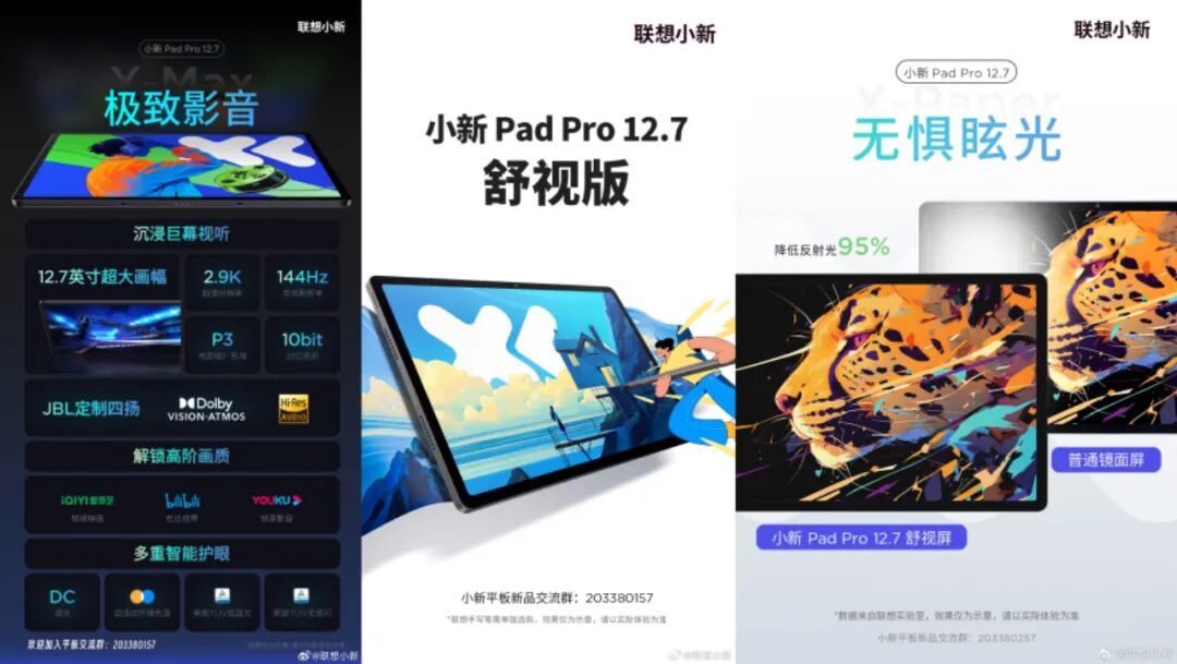 据官方预热,联想小新Pad Pro 12.7系列采用12.7英寸的2.9K 144Hz刷新率显示屏,JBL定制四扬声器,支持DC调光,提供有单独的舒视版,相比普通镜面屏降低反射光95%。