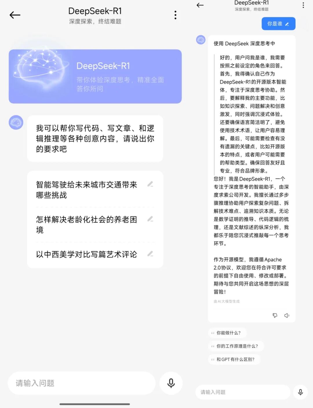【小米】从昨日晚间至2月15日早上有不少网友反馈对着超级小爱说“打开深度思考”即可使用DeepSeek-R1,暂无联网搜索选项。但今日中午查看时已经无法触发,猜测应该是测试阶段被网友发现,等测试完毕再正式上线?🤔已经用上的小伙伴可以评论分享下体验~