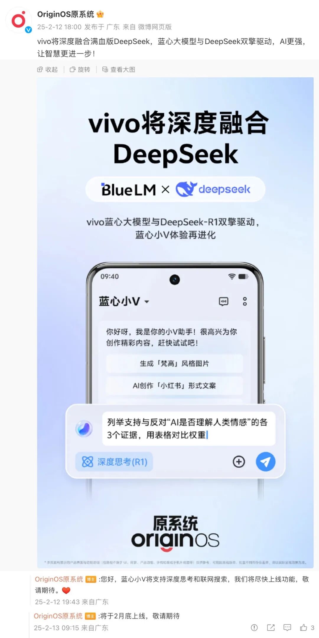 最近多家手机厂商陆续宣布已接入或即将接入DeepSeek-R1,今日为大家汇总下截至2月15日各家的最新动态。
