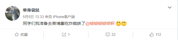 “同学们我准备去柬埔寨吃炸蜘蛛了”