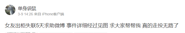 2019年3月9日,袋鼠发布第一篇求助微博: