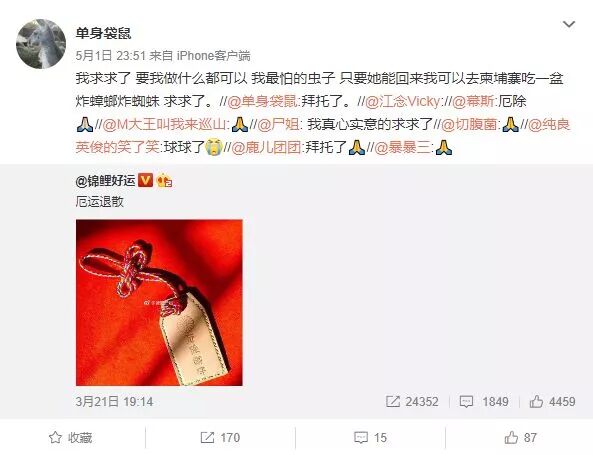 曾经,袋鼠在与蝴蝶失联期间,在微博发下祈求: