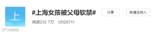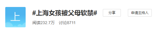 同时,#上海女孩被父母软禁#也已经获得了232.7万人次的阅读量