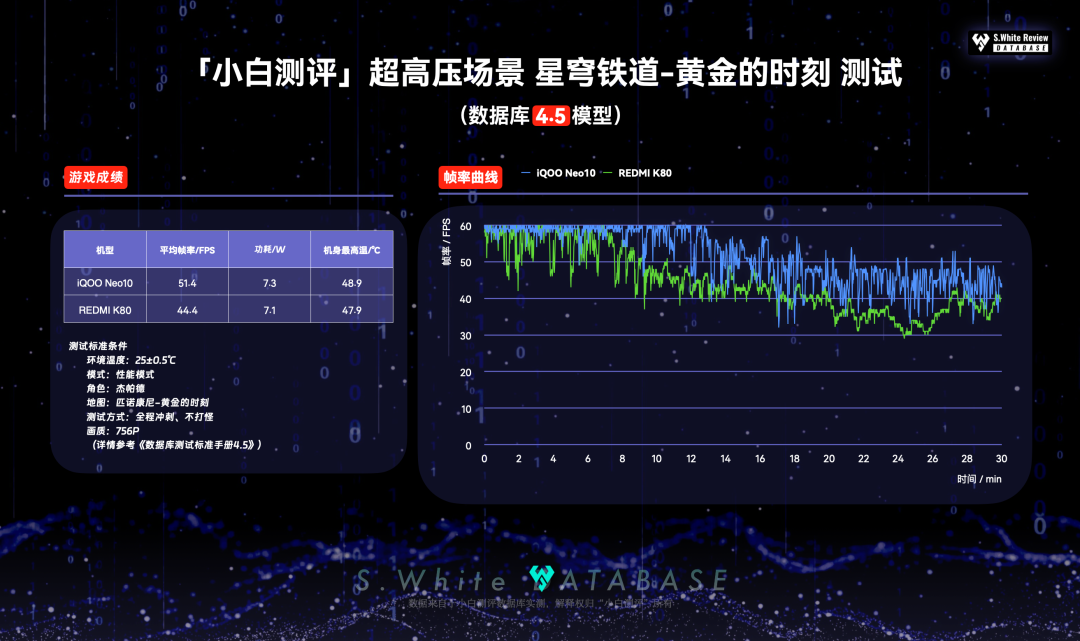 REDMI K80系列和iQOO Neo10系列我们都已经发了Pro的测评,两个的标准版价位都在2000~3000元,相对大哥性价比更有优势,搭载的都是上代旗舰处理器骁龙8 Gen3,很多小伙伴问我们加班加点先测了下数据库4.5模型的游戏表现: