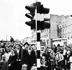 挂着可旋转的红、绿两色玻璃灯的灯柱