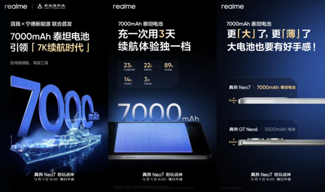 具体参数上,结合官方预热和入网信息,真我Neo7将采用6.78英寸2780*1264分辨率的1.5K AMOLED显示屏,短焦光学屏下指纹,塑料中框,机身三围162.55*76.39*厚约8.56mm,重约213.4g,搭载联发科天玑9300+处理器,配备7700mm²VC散热,7000mAh电池、支持80W有线充电,前置16MP,后置50MP+8MP,支持红外遥控和IP69,起售价将≤2499元,大家觉得会卖多少钱?
