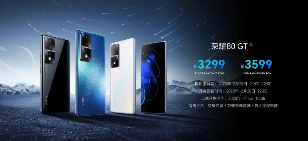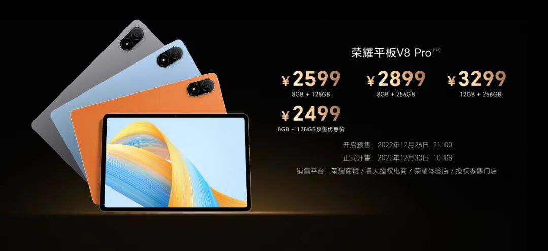 :8+128GB版售价2599元 首销2499元起,8+256GB版2899元,12+256GB版3299元;荣耀手环7首销价199元。