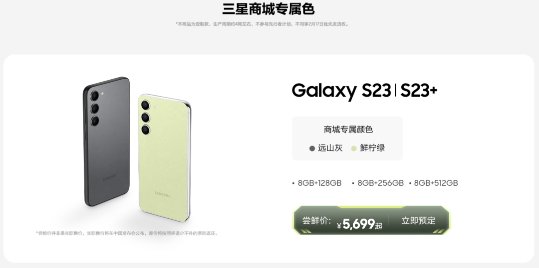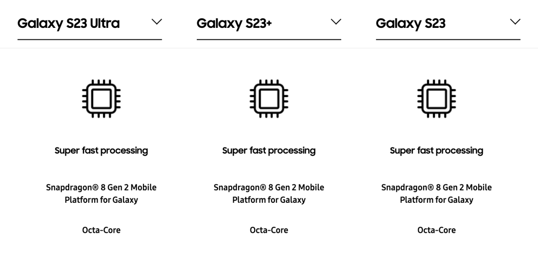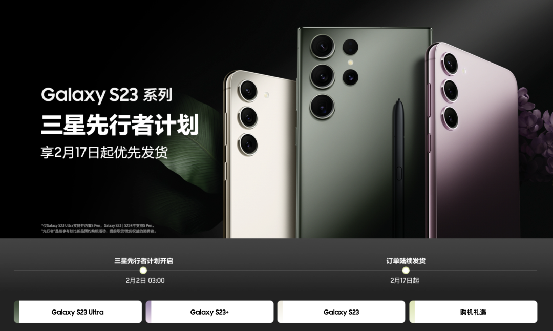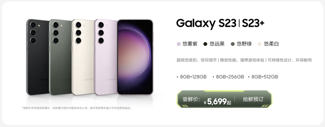 声音 | 小白不知道大家眼中现在手机圈的安卓机皇是哪款机型?从前说“安卓机皇”,这些年算下来提最多的是三星,不论是产品,还是说三星在全球手机市场(份额)老大的地位。今天凌晨三星Galaxy S23系列正式发布,来汇总下配置和价格,看看还能叫机皇吗~核心配置上,三星S23/S23+/S23 Ultra全系首发标配主频为3.36Ghz的骁龙8 Gen2,这颗SoC芯片官方命名“Snapdragon® 8 Gen 2 Mobile Platform for Galaxy”,可以简称为骁龙8 Gen 2 for Galaxy,台积电4nm工艺。另外三星S23系列全系LPDDR5x+UFS 4.0(S23 128GB版是UFS 3.1)。 【三星S23/S23+:尝鲜价5699元起】
