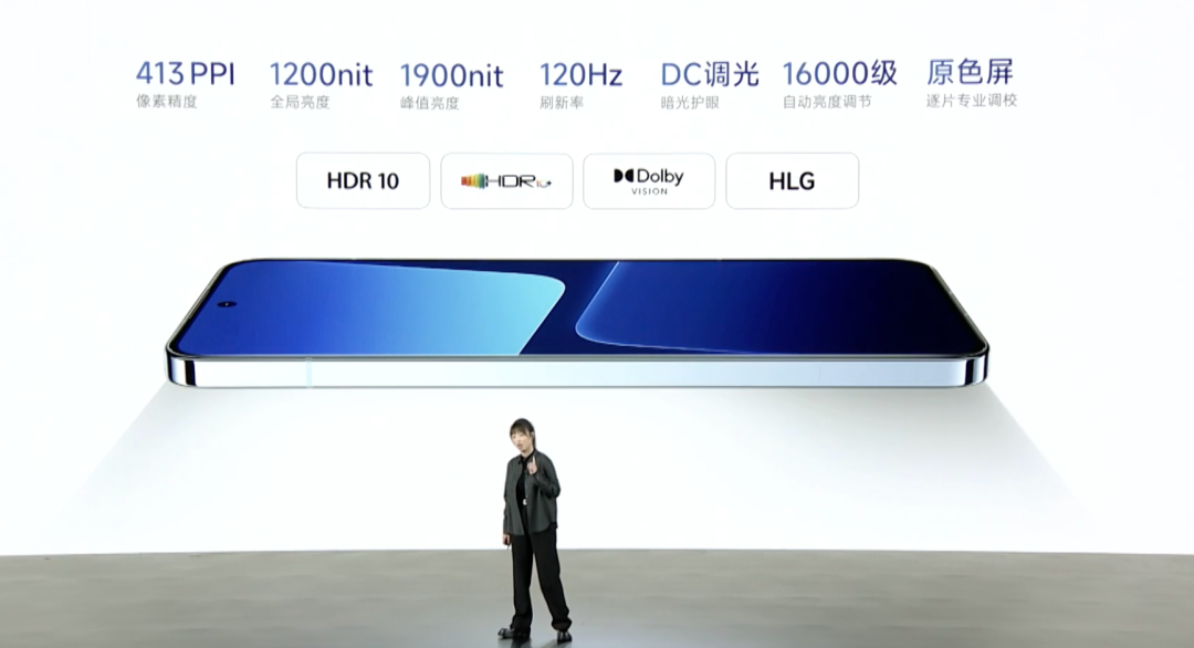 小米13主要配置:6.36英寸2400*1080分辨率的三星E6居中单挖孔OLED柔性直屏,120Hz刷新率+240Hz采样率,全局亮度1200nit,局部峰值亮度1900nit,支持DC调光,屏下指纹,高亮铝合金直角中框。