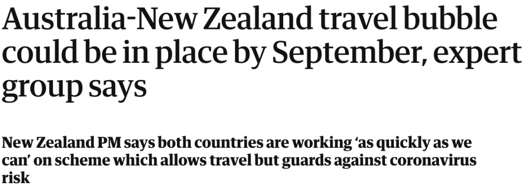 提案背后的专家工作组表示,允许澳大利亚人和新西兰人在两国之间旅行的“travel bubble”计划最早将于下周提交给两国政府,并可能在9月才开始运作。