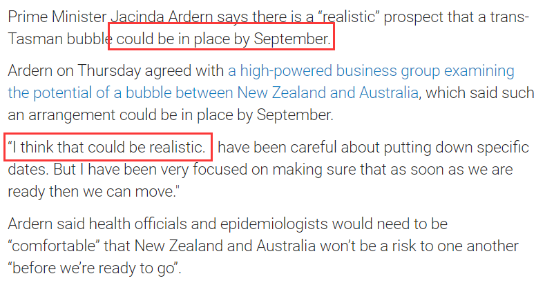 如果澳新之间的旅行都要等到9月开始,对其他国家开放边境的计划估计就要更晚了,也就代表,7月的边境开放计划,估计是无望了。