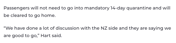 一旦获批,澳洲封锁边境线后的首架海外航班载着政府官员,媒体和企业代表前往新西兰。