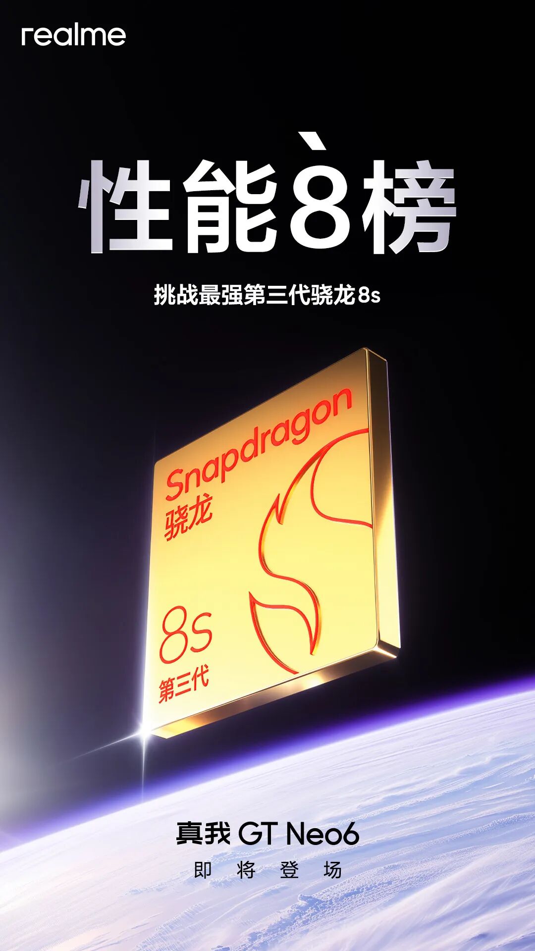 此外,realme副总裁徐起还发文称真我GT Neo6要挑战最强骁龙8s Gen3旗舰。早前数码闲聊站还称“目前看屏幕规格、性能释放、电池快充方案都很均衡,似乎是这波8s Gen3新机里综合配置最强的”。大家看好吗?