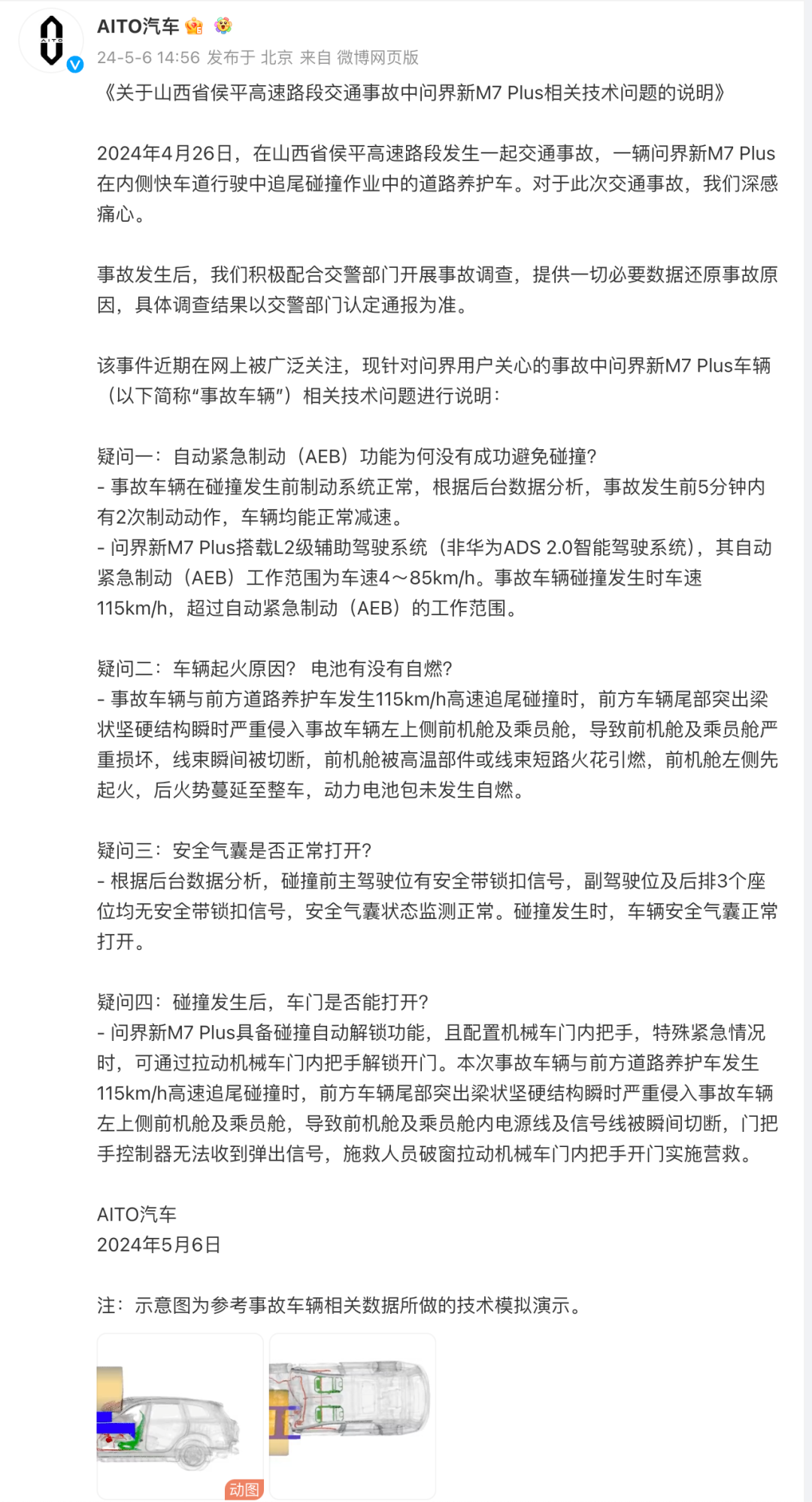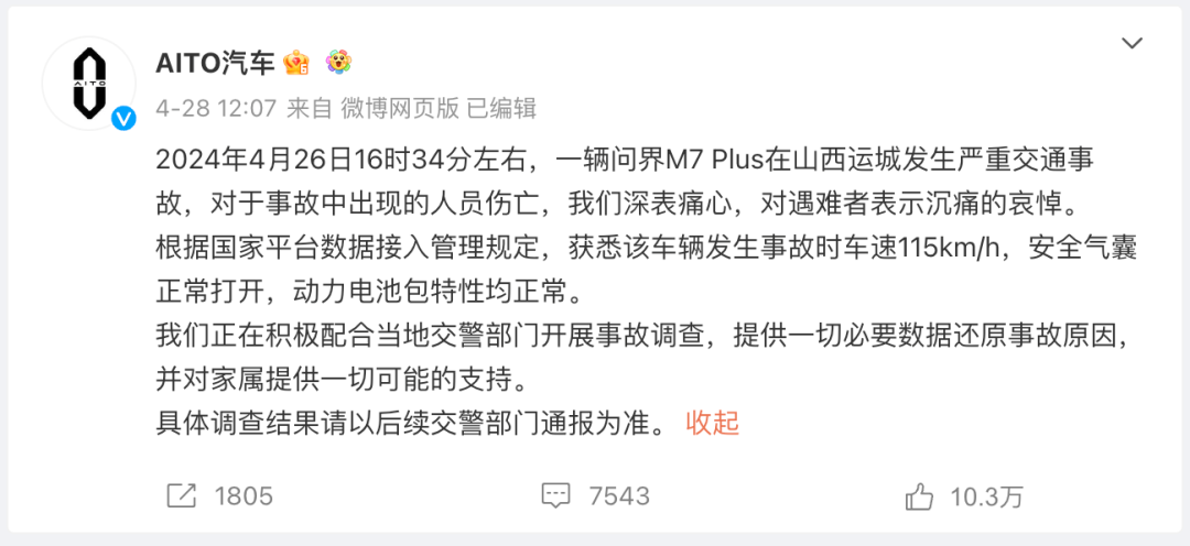 上图为AITO汽车的第一次回应