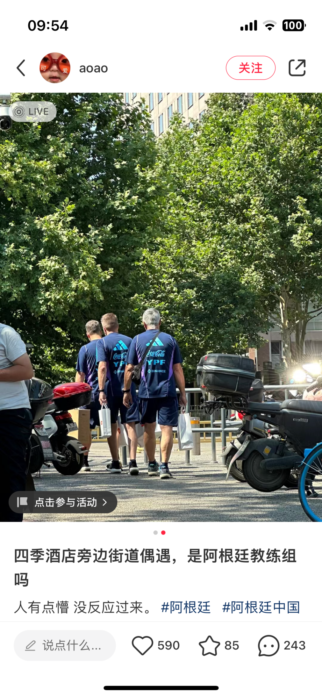 近日小红书有网友发帖表示在北京四季酒店附近偶遇阿根廷教练组,似乎刚外出采购归来。
