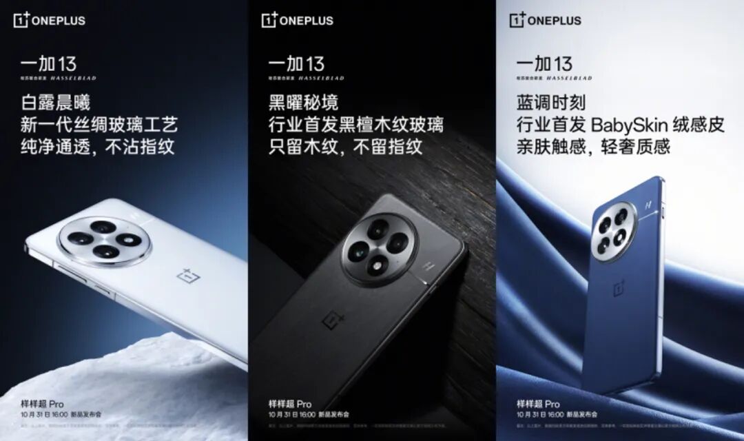 具体一加13这次提供「白露晨曦」「黑曜秘境」「蓝调时刻」3个配色,白色采用新一代丝绸玻璃工艺、不沾指纹,黑色则是行业首发黑檀木纹玻璃、后盖有木纹、同样不留指纹,蓝色则是行业首发BabySkin绒感皮,蓝色素皮+银白色Deco拼色处理还挺特别。