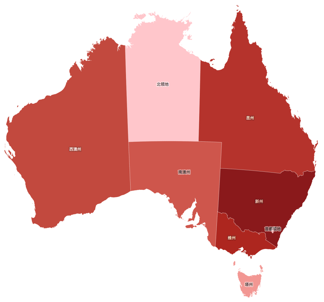 新州增加5例;维州新增2例;南澳新增两例;西澳新增1例;塔州新增1例;昆州、首都领地、北领地都是0新增,其中北领地连续16天无新增。