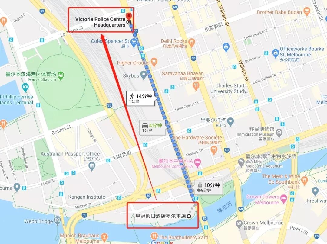 Crown Plaza酒店紧挨着Docklands的维州警察中心,1公里的距离,小跑过去也就几分钟。