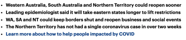 这三个州分别是南澳、西澳和北领地。三个州可以保持边境关闭,开放商业和社会活动。