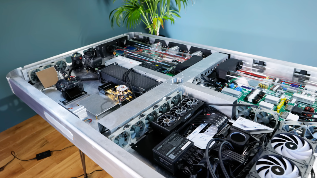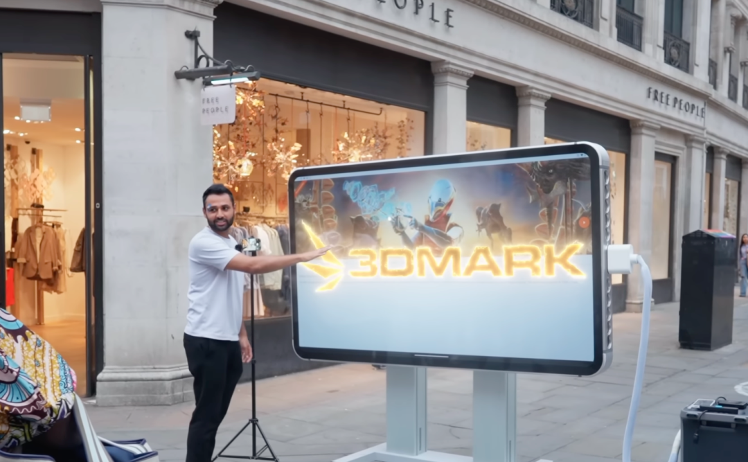 核心配置上,由于苹果系统封闭性,这台“巨型iPhone”并非原生iOS,底层其实是Android系统+Windows,第三方主题模拟,内置AMD 6950 XT显卡,4TB SSD,两个水冷系统,视频中还街头运行了3DMark,并进行支付操作。