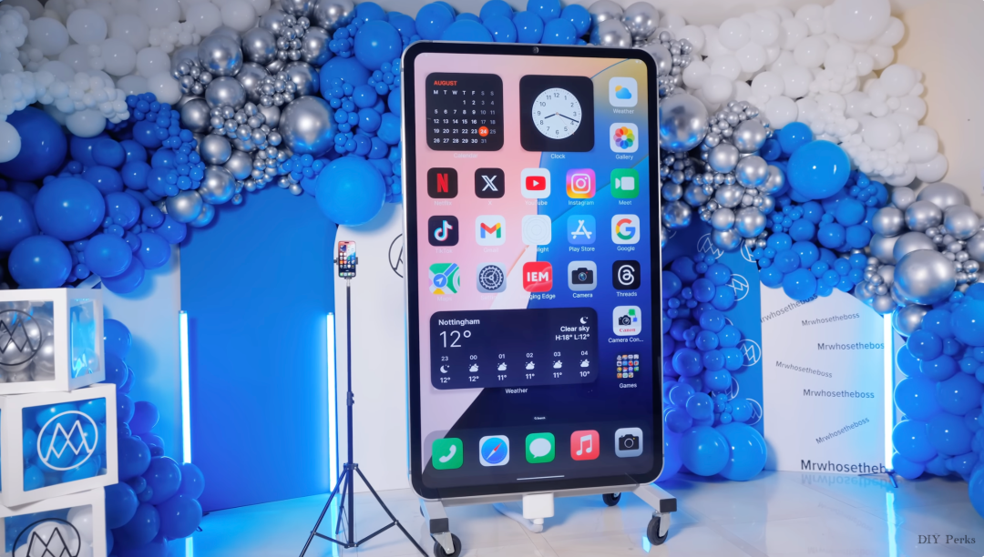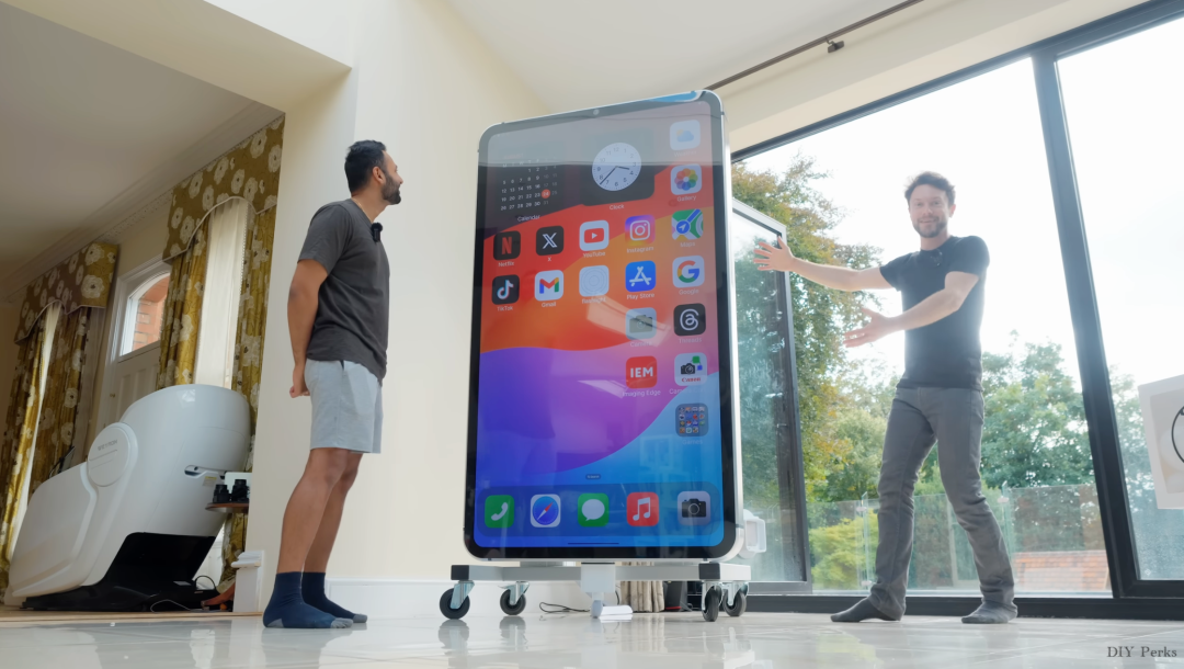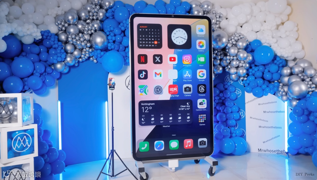 如上图所见,YouTube频道DIY Perks和Mrwhosetheboss打造了一台“巨型iPhone”,屏幕基于一台88英寸的LG 8K OLED电视改装,定制专门的触摸箔、实现触屏操作,可以正常刷Instagram、TikTok等应用。(PS.偶尔手指滑动屏幕会轻度摩擦灼伤)。