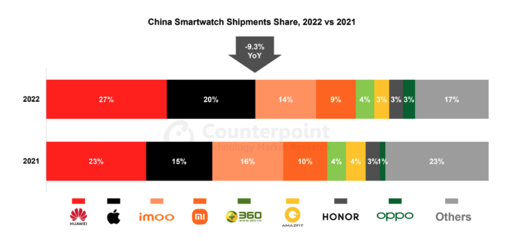 市场研究机构Counterpoint Research发布了最新的智能手表市场追踪报告。