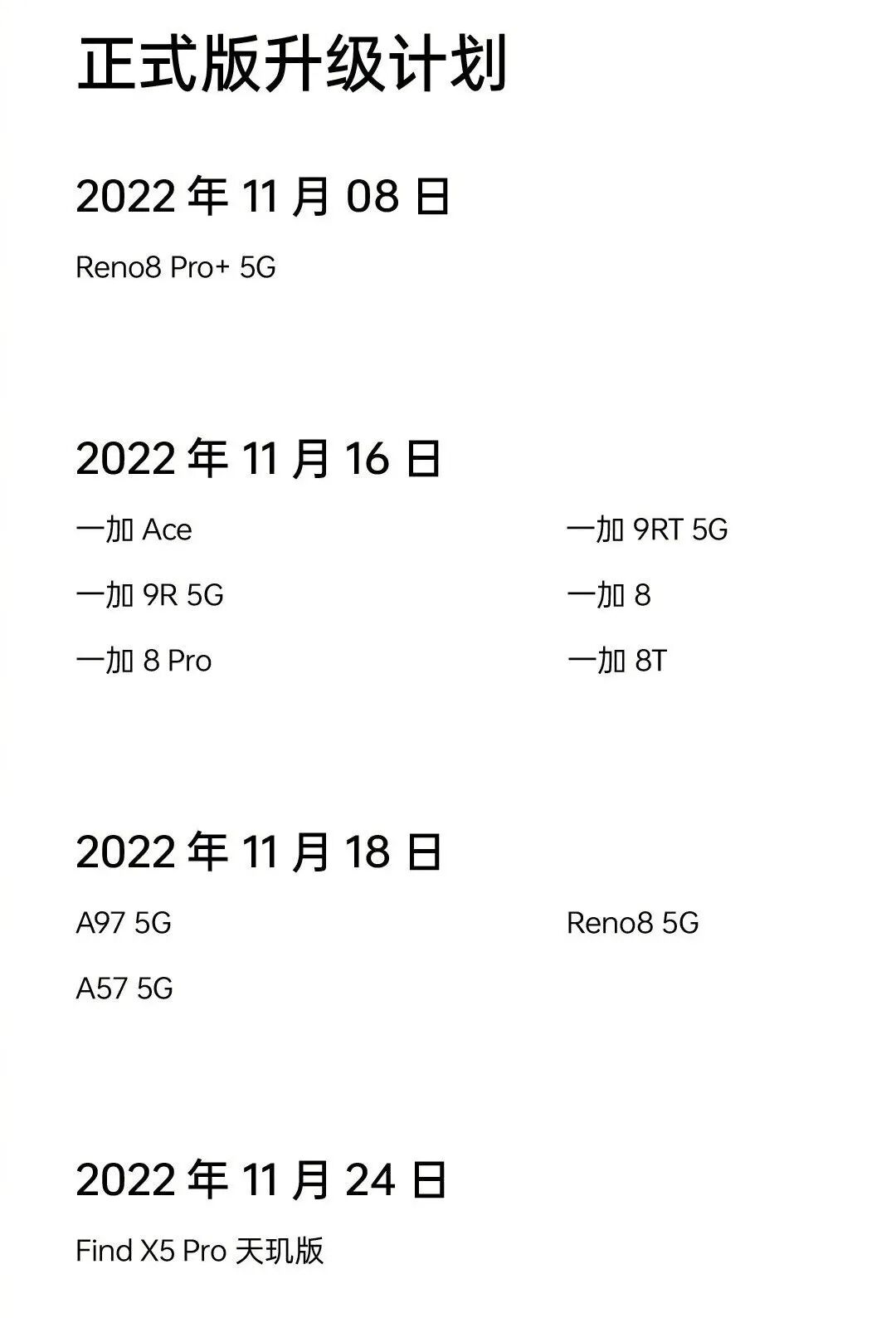 今天是11月第一天,ColorOS也公布了11月的ColorOS 13系统适配计划表。