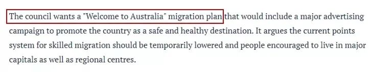 报告还认为,目前的技术移民积分制应暂时降低,并鼓励人们居住在主要首都和地区中心。