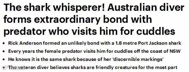 当时Rick Anderson带着学生们练习潜水,恰好碰到了一群Port Jackson小鲨鱼(澳大利亚虎鲨),为了告诉学生它们其实很友好,所以教练随机挑中了一只小鲨鱼并且拍了拍她的身体。