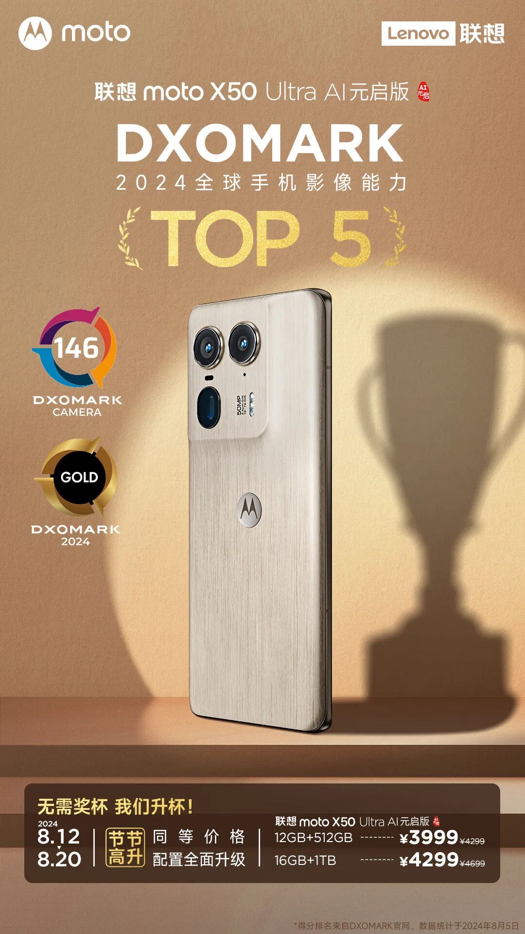 如上图所见,moto X50 Ultra为庆祝拿下DxoMark影像能力评分全球TOP5,宣布12+512GB版从4299元降为3999元(3999之前只能买到12+256GB版本),16GB+1TB版本从4699元降为4299元。