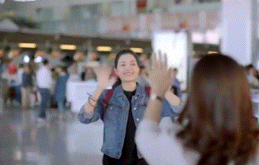 变成她幼年时背书包与父母告别扮笑脸的场景。