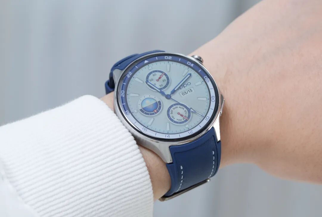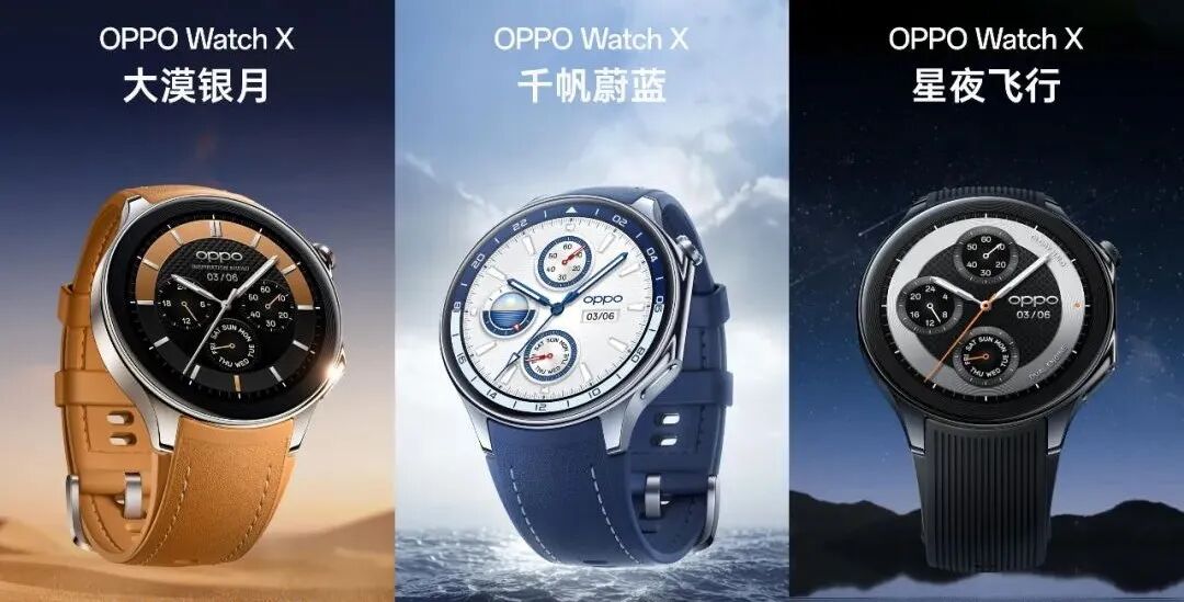 外观设计上,OPPO Watch X采用1.43英寸466*466 OLED圆形表盘,激发亮度1000nit,蓝宝石水晶表镜,表壳右侧配备旋转表冠以及物理按键,一体锻压精钢表身,官方号称防摔能力达OPPO Watch 4 Pro的四倍,提供大漠银月(棕)、千帆蔚蓝(蓝)、星夜飞行(黑)3款配色。