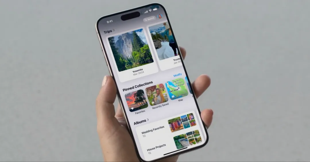 ⑥iOS 18带来全新照片App,全新布局,底部新增更多按键,可以筛选过滤特定场景的照片;可自定义个人收藏、精选集照片的位置;查看照片时顶部会轮播展示;相册编辑图片界面也有变化,所有图片默认四周轻微圆角展示;(其中相册也是今天网友更新后吐槽最多的地方,因为逻辑相比之前大变...)