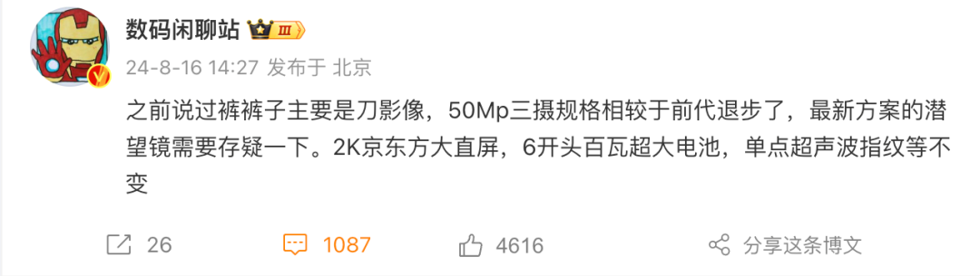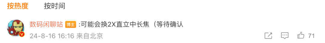 如果消息属实,也意味着这是iQOO第二次取消潜望长焦,第一次是iQOO 5 Pro上了潜望长焦后、后面几代取消,时隔三年后潜望长焦在iQOO 12系列上回归、并且全系标配(OV64B 3X潜望)。个人角度来说,从口碑考量iQOO 13不应该取消潜望,但如果要为了和X200系列差异化,更侧重续航和性能,也能理解。不过目前距离产品发布还有两个多月时间,现在是否取消也是存疑,再等等官方消息吧。