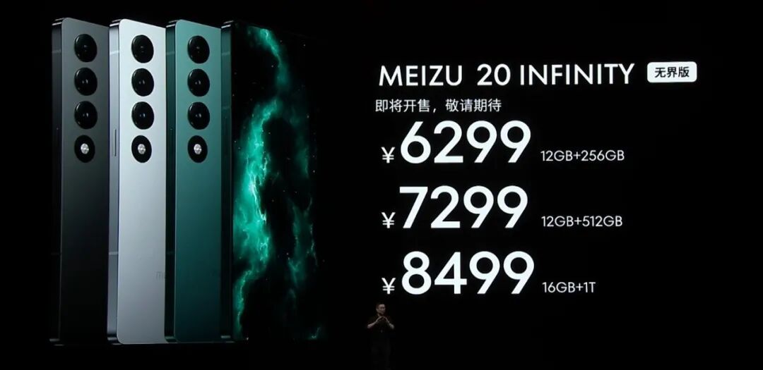 价格上,魅族20 INFINITY无界版暂时未公布上市时间,目前是预约中,12+256GB版售价6299元,12+512GB版7299元,16GB+1TB版8499元。